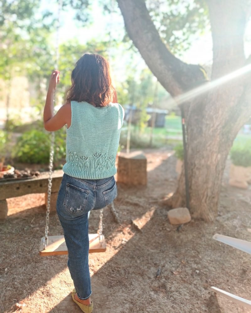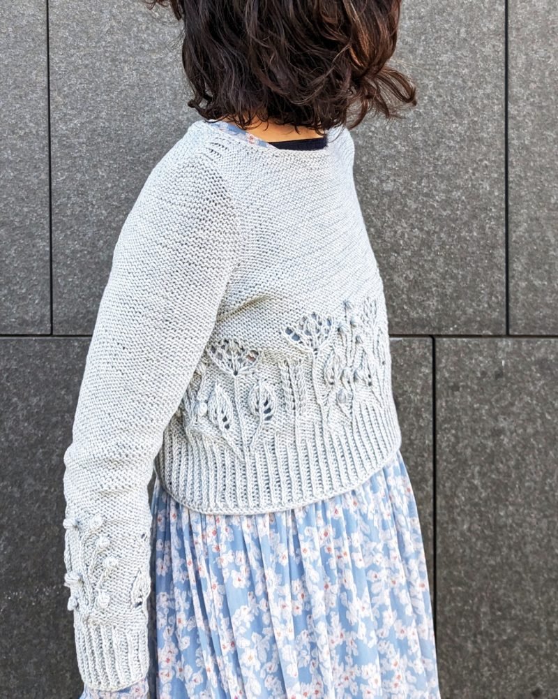 Download the Lore Tee & Sweater Knitting Pattern and create a charming garment with floral lace, perfect for sunny days or cozy evenings.